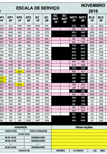 As informações estão na escala de pilotos da unidade. Em forma de trigrama (três primeiras letras), as iniciais SCH, de Schorcht, aparecem em plantões de 12 horas nos dias 17 e 18. E, no dia da queda, ele trocou de lugar com o subcomandante.