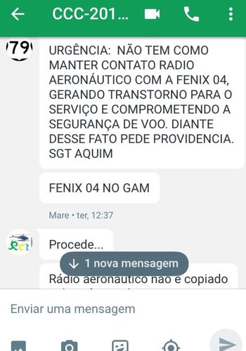 Uma mensagem de WhatsApp do grupo que estava de serviço no dia 15, obtida pela reportagem, contém a descrição de um operador relatando falha na comunicação. “Urgência. Não tem como manter contato rádio aeronáutico com a Fênix 4, gerando transtorno para o serviço e comprometendo a segurança de voo. Diante desse fato pede providência.”
