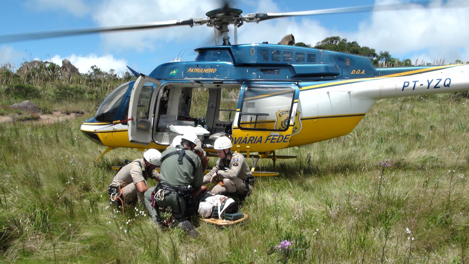 Ao realizar pouso próximo ao local com o Patrulha 06, foi realizada ancoragem no gancho de carga da aeronave Bell-407 com mosquetões e cabo de 11mm duplo, restando aproximadamente 30 metros de comprimento.