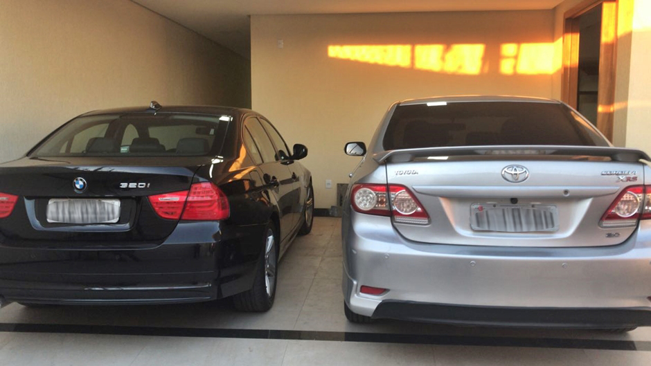 Toyota Corolla e BMW estavam dentro da casa na Cidade Vera Cruz. (Foto: Polícia Militar)