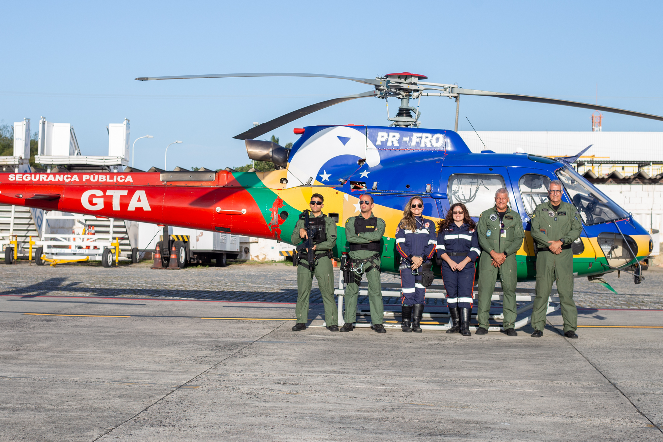 O grupamento conta com um helicóptero Airbus AS350B3 (Esquilo). O efetivo é composto por 30 servidores, oriundos da Polícia Civil, da Polícia Militar e do Corpo de Bombeiros Militar. “É uma unidade 100% integrada, que já tem uma história com mais de 3 mil horas de voo, sem incidentes, e com mais de 150 operações reais e exitosas. Foram mais de 100 vidas salvas, e isso é muito gratificante”, disse o Coronel Fernando Góes, comandante do GTA.