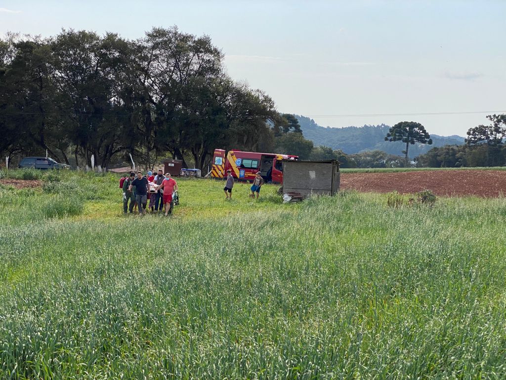 Com apoio do Corpo de Bombeiros, após a estabilização, ele também foi encaminhado em estado grave pelo Falcão 03 para o Hospital do Rocio.