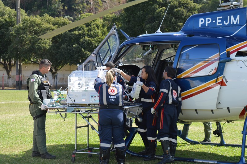 Compondo a tripulação do helicóptero estavam o Capitão Henrique, 16 anos na Policia Militar e 7 anos como piloto, e o Sargento Glauber, além do Dr. Rafael e a enfermeira Lílian, que receberam a assistência dos profissionais Marinês e Jhonnathan, do SAMU, durante a transferência do bebê para o helicóptero.