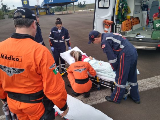 A paciente foi vítima de infarto agudo do miocárdio e estava no Hospital Regional de Chapecó. Ela foi transferida com urgência para o Hospital Regional São Paulo, em Xanxerê. O tempo de voo na transferência foi de 8 minutos.