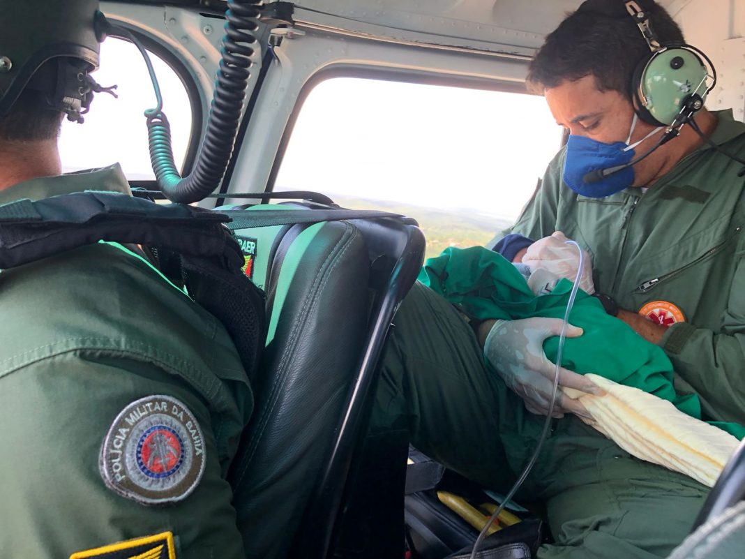 Bahia – Na manhã de segunda-feira (06), equipe do Grupamento Aéreo (GRAER) da Polícia Militar da Bahia foi acionada para realizar transporte inter-hospitalar de Mar Grande para Salvador. A paciente foi atendida na UPA (Unidade de Pronto Atendimento) de Mar Grande e a equipe de saúde solicitou o transporte de urgência.