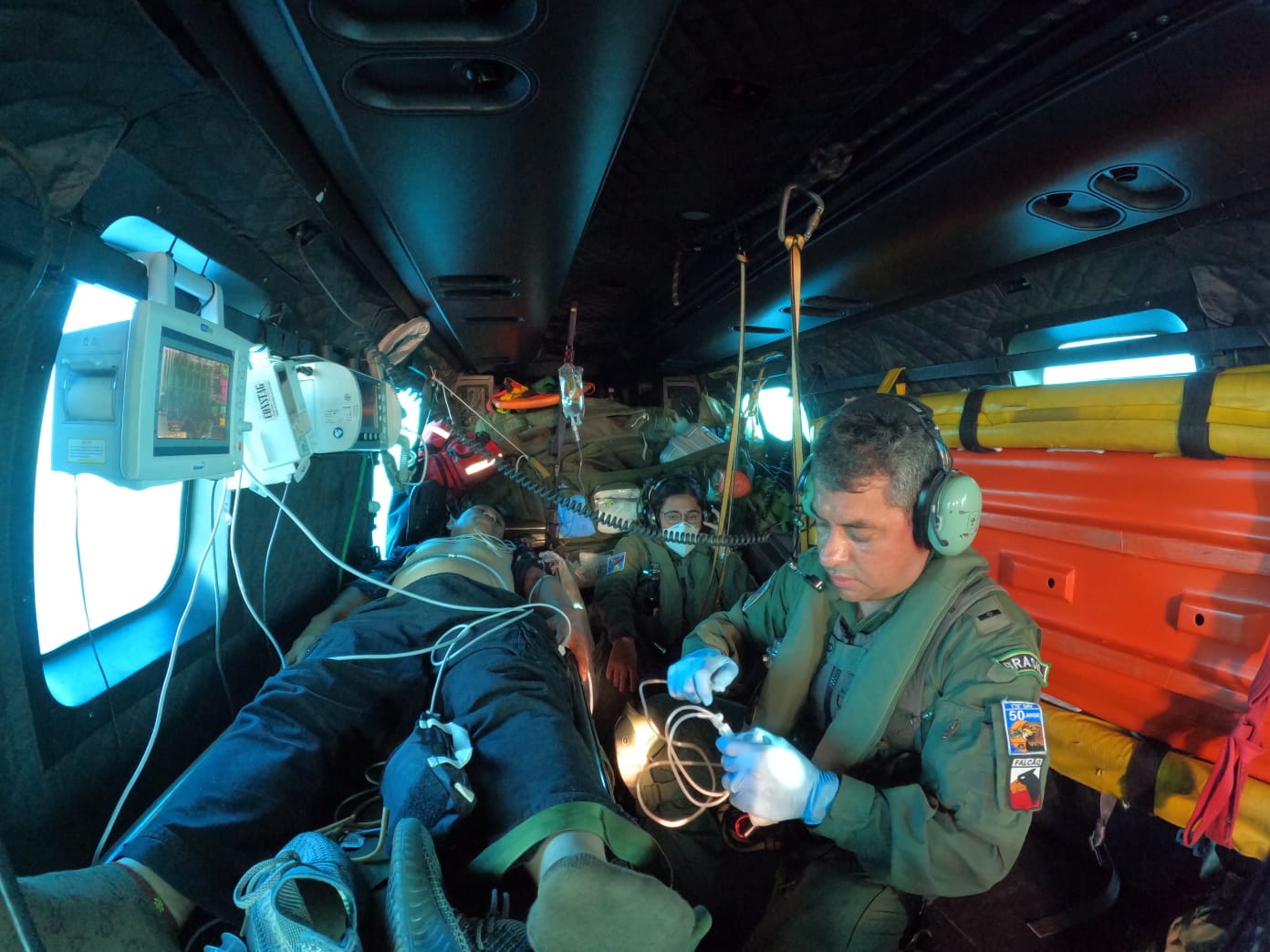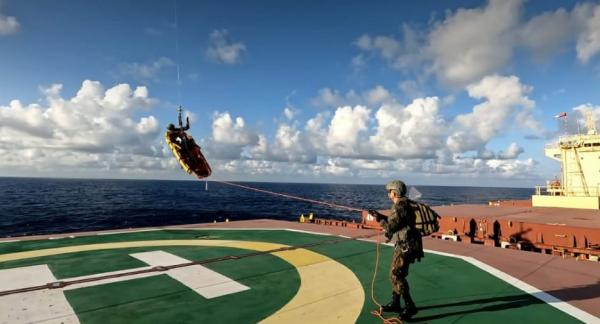 Para o resgate, um helicóptero H-36 Caracal decolou da Base Aérea de Natal por volta das 12h35 com destino a Recife (PE). A equipe multidisciplinar da FAB, composta por dois pilotos, um mecânico de voo, um operador de guincho, três homens de resgate (SAR), uma médica e um enfermeiro, realizou a retirada da vítima do navio pelo procedimento de içamento por maca com uso do guincho.