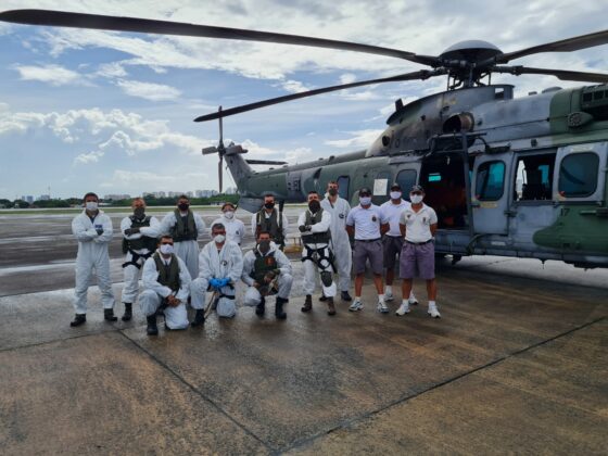 No total, a tripulação do helicóptero foi formada por 11 militares, sendo três pilotos, um mecânico, dois operadores de equipamentos, três homens de resgate (HSAR), uma médica e um enfermeiro. Todos usaram trajes especiais para minimizar o risco de qualquer contaminação.