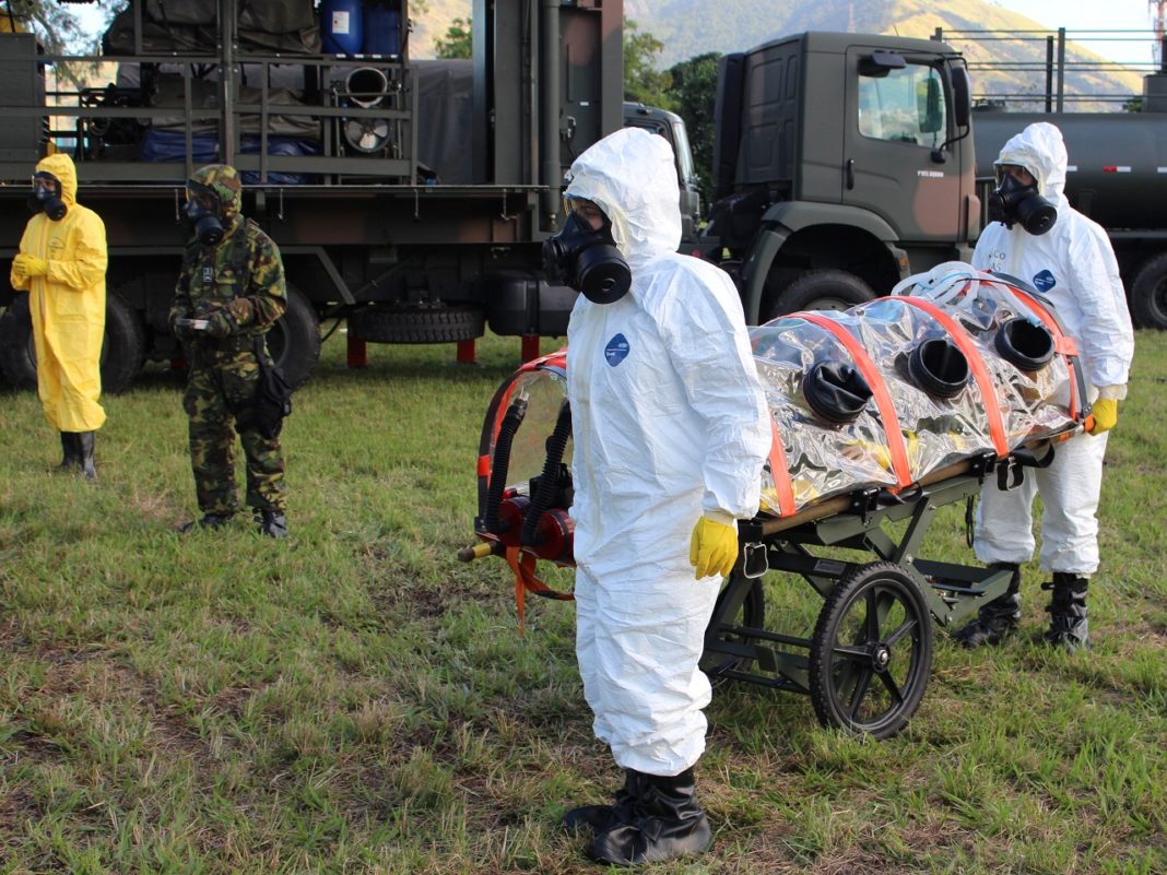 A atividade materializou o compromisso firmado pelos Ministérios da Defesa, das Relações Exteriores e da Ciência Tecnologia, Inovação e Comunicações com a Organização para Proibição de Armas Químicas (OPAQ), no sentido de capacitar recursos humanos na área de assistência e proteção em resposta a emergências químicas.