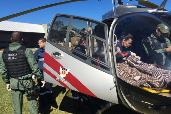 Paraná- O helicóptero Falcão 03 do Batalhão de Operações Aéreas da Polícia Militar – BPMOA , sediado em Londrina (norte do Paraná), realizou deslocamentos neste domingo (17) para transportar emergencialmente duas pessoas feridas em acidente registrado em Ivaiporã (Vale do Ivaí).