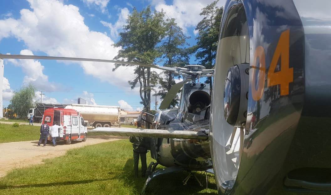 Equipes do Serviço Integrado de Atendimento ao Trauma em Emergência (SIATE) do Corpo de Bombeiros realizaram apoio ao transporte das vítimas pelo helicóptero do BPMOA.