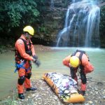 O paciente, do sexo masculino, com aproximadamente 120kg, havia caído ou saltado de uma altura aproximada de cinco metros, ou maior, considerando que a cachoeira possuía vários degraus em plataformas até a sua base.