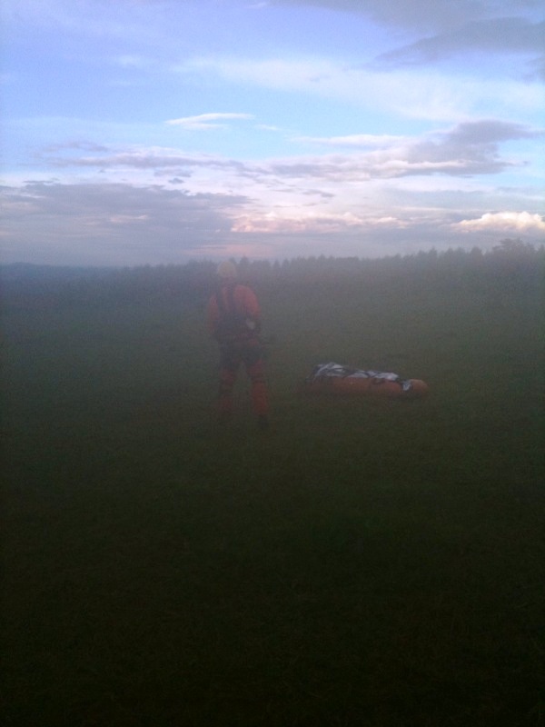 O terreno muito acidentado, não permitia muitas opções de trabalho e locais para pouso. Após um reconhecimento minucioso foi decidido um local para pouso sobre o morrote mais próximo do local da queda do paciente.