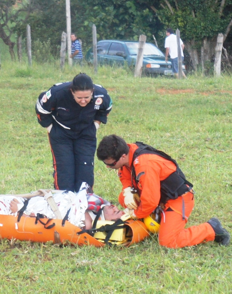 Após a realização de um briefing no local, foi estabelecido que o Médico juntamente com mais dois TOPs desceriam pelas vias de acesso indicadas pelos populares no local, para iniciar o atendimento e dar o retorno sobre a maneira mais segura de se retirar o paciente daquele local.
