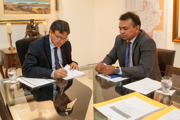 A pedido do governador, o secretário da Segurança fez a entrega do projeto autorizado para o superintendente de Cooperação Técnico Financeira da Secretaria de Estado do Planejamento, Sérgio Miranda, para dar prosseguimento aos trâmites de aquisição das aeronaves.