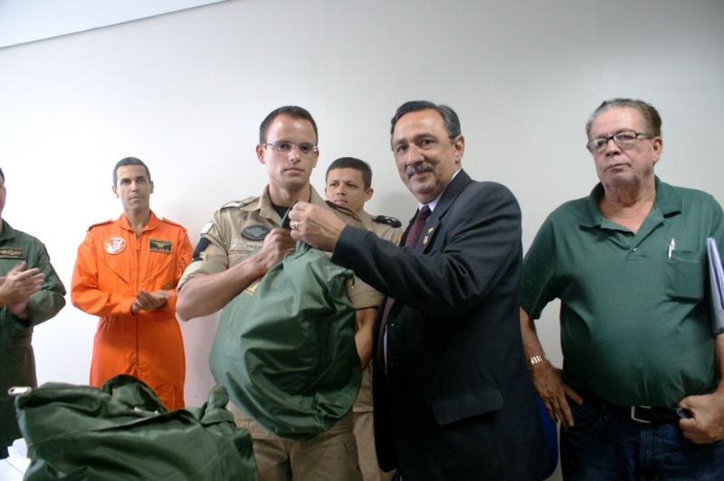 O Secretário da Segurança Pública, João Fonseca Coelho, entregou na manhã desta sexta-feira, 14, kits de segurança para os tripulantes da aeronave do Estado. Foram investidos 225 mil reais em equipamentos. A entrega foi realizada no encerramento do encontro dos Delegados Regionais no auditório da Secretaria da Segurança Pública.