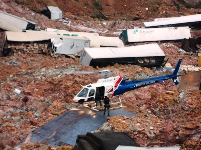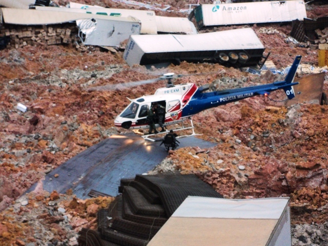 Havia também a suspeita de que haviam pessoas soterradas no local. O helicóptero ÁGUIA 01 foi acionado e chegando ao local embarcaram na aeronave os Oficias Bombeiros que comandavam a operação para uma avaliação geral do local, planejando assim como seriam as incursões, buscas e salvamentos na cena do sinistro.