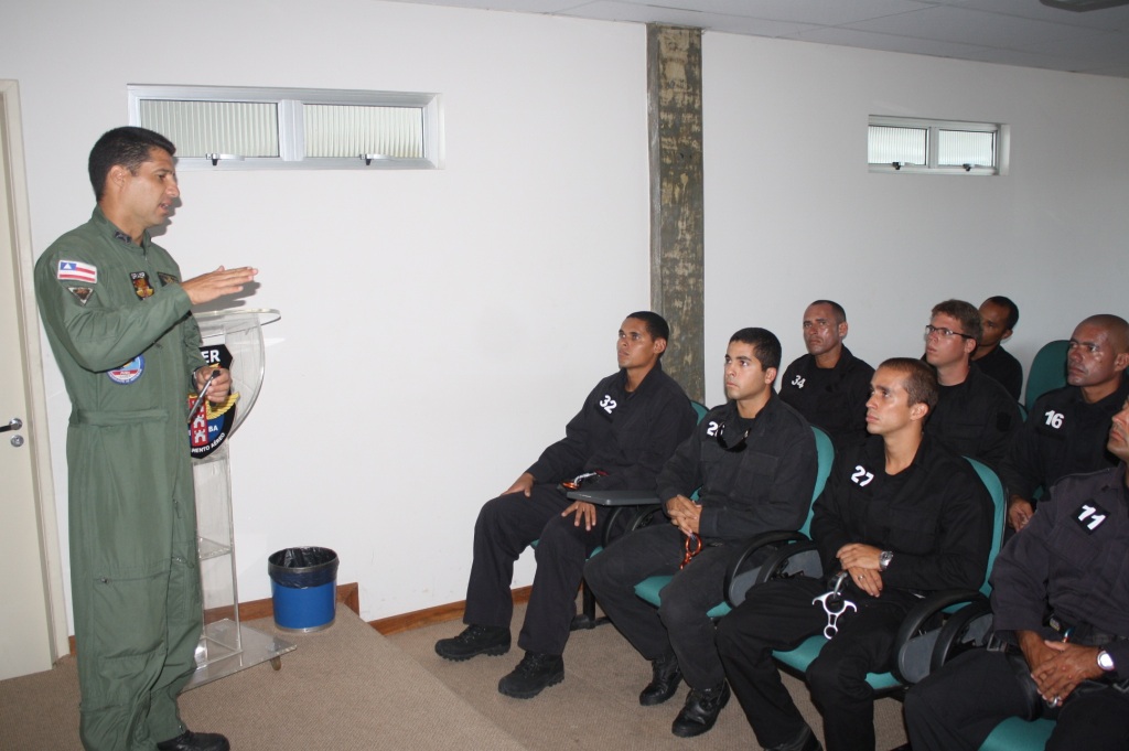 O Ten Cel Lázaro deu as boas vindas ao grupo, que na seqüência assistiu uma apresentação sobre a criação do GRAER e a sua doutrina de emprego, a qual fora proferida pelos capitães PM Wolney e Luciano, com a participação do Sub Ten BM Agnaldo.