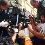 Os tripulantes operacionais juntamente com o médico do GRAER (SESAB) fizeram as intervenções necessárias desde o uso do desencarcerador para liberação da vítima mais grave das ferragens, até a sua estabilização e remoção a bordo da aeronave.