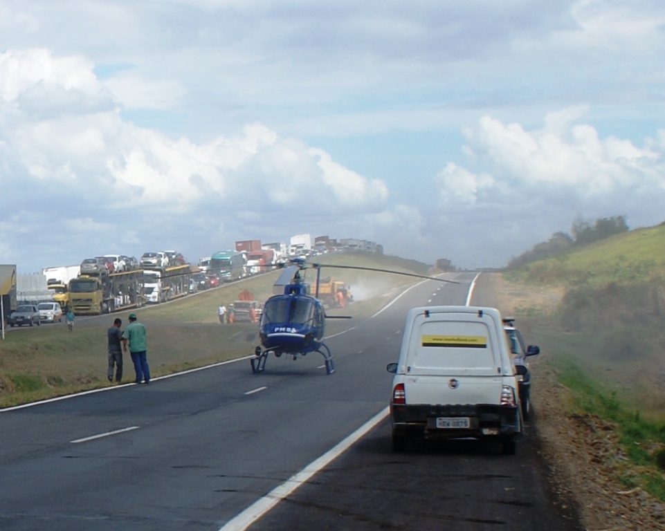 De imediato, foram acionados dois toques na sirene do hangar, indicando tratar-se de uma ocorrência de resgate aeromédico, ao que os policiais militares de serviço embarcaram rapidamente no helicóptero PR-HPM e seguiram para o local da ocorrência, tendo o Guardião 05 pousado no leito da via.