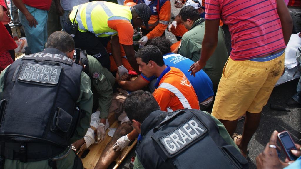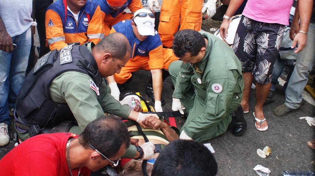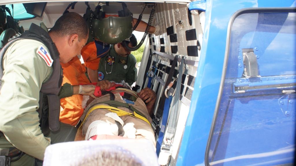 A vítima em estado mais grave foi encaminhada através do helicóptero da PM para o Hospital do Subúrbio, onde apesar de muito agitada, chegou com vida.