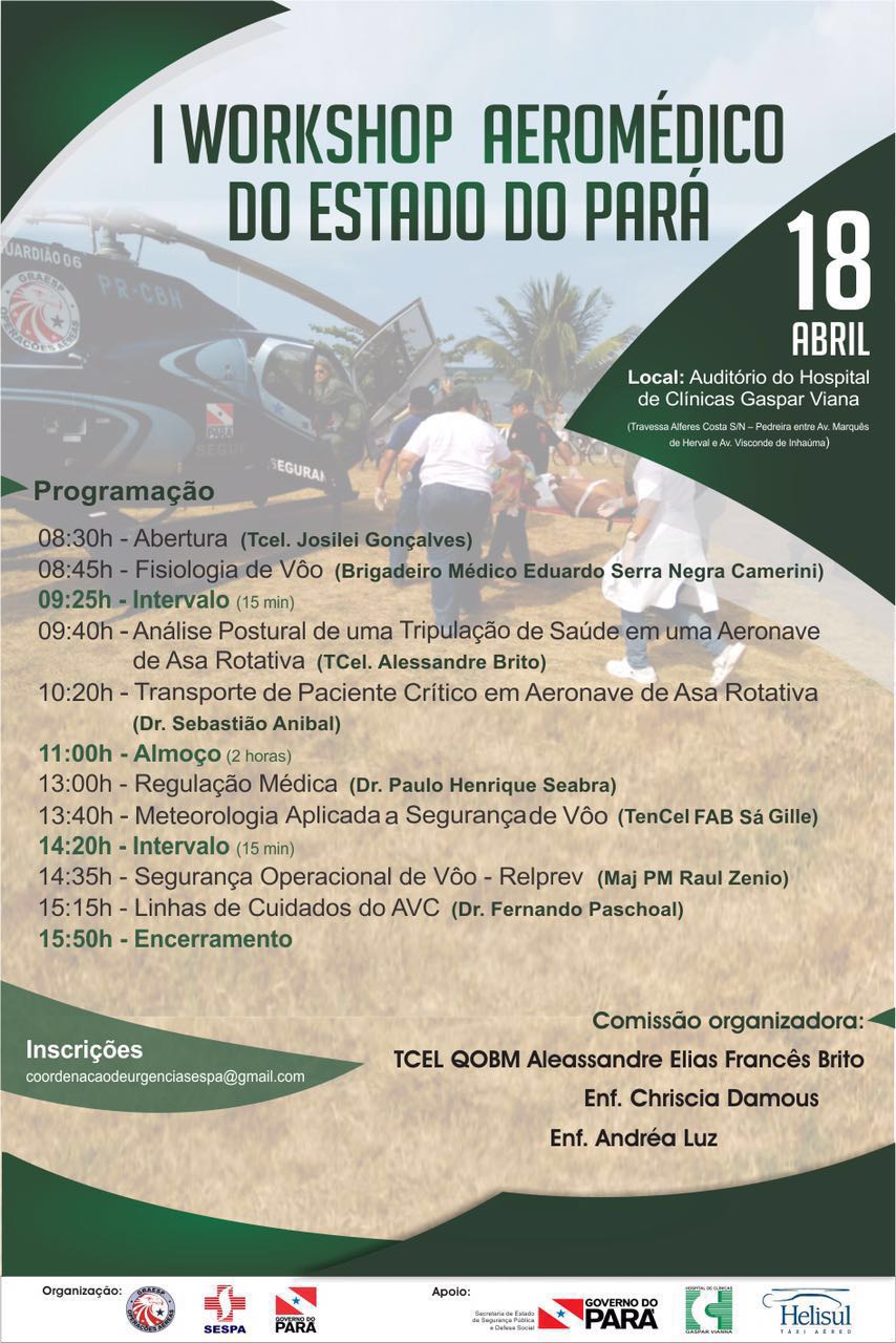 PARÁ – O Grupamento Aéreo de Segurança Pública do Pará – GRAESP com a Secretaria de Saúde do Estado – SESPA realizarão, em parceria, no dia 18 de abril, o I Workshop Aeromédico do Pará.
