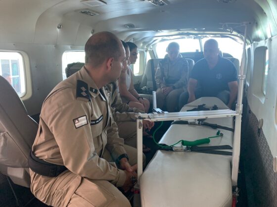 Na parte prática, os alunos aprenderam técnicas de embarque e desembarque com paciente, em avião e helicóptero. O comandante do GRAER, tenente-coronel Anderson Wolney, contou que a capacitação foi ministrada por pilotos e tripulantes operacionais da unidade, com apoio de enfermeiros e da médica Janete Braga.