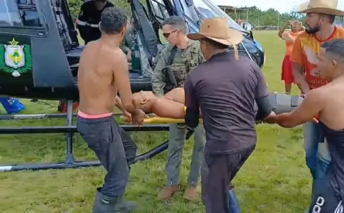 Uma equipe do Serviço de Atendimento Móvel de Urgência (SAMU), que estava a bordo do helicóptero Gavião 01, fez a estabilização do paciente para seguir ao Hospital de Emergência, na capital. Chegando em Macapá, o pouso foi realizado no campo do estádio Glicério Marques, que fica próximo à unidade hospitalar.