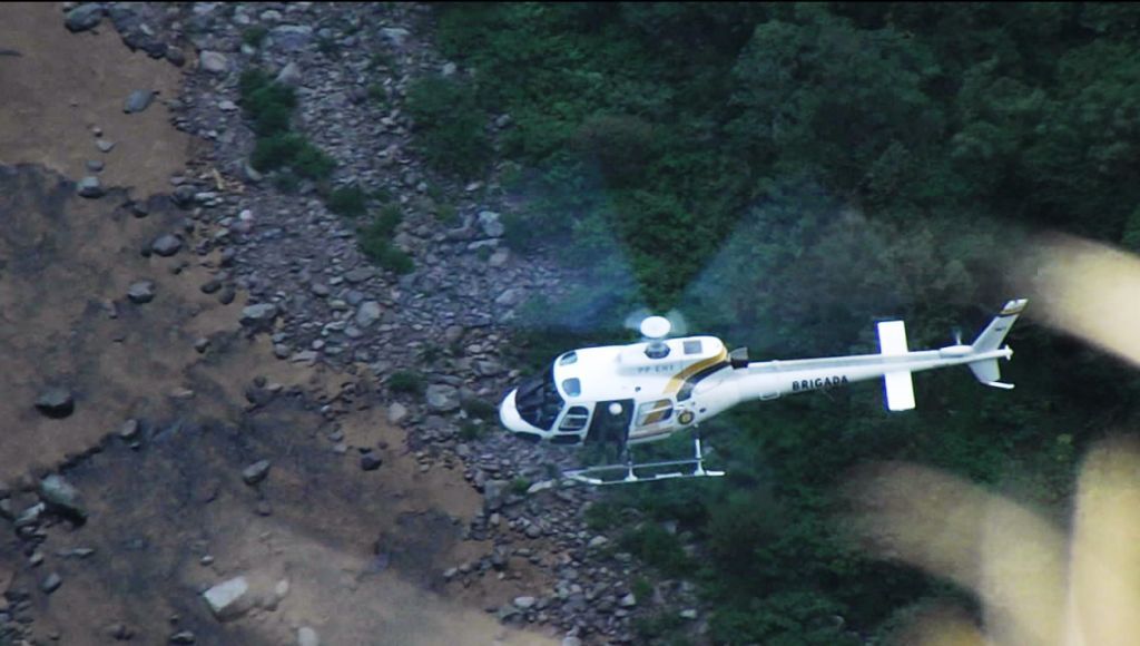 O helicóptero esquilo (AS350), denominado “Guapo 09”, do Batalhão de Aviação da Brigada Militar também foi utilizado nas buscas, desembarcando bombeiros em locais de difícil acesso e efetuando varredura na região do parque.