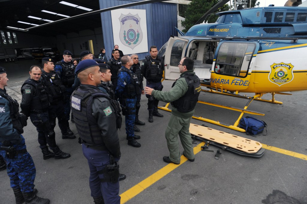 Quarenta e três guardas municipais de Curitiba realizam nesta semana o curso Técnicas no Apoio de Atividade com Helicópteros em Ocorrências, oferecido pela Divisão de Operações Aéreas da Polícia Rodoviária Federal (PRF).