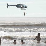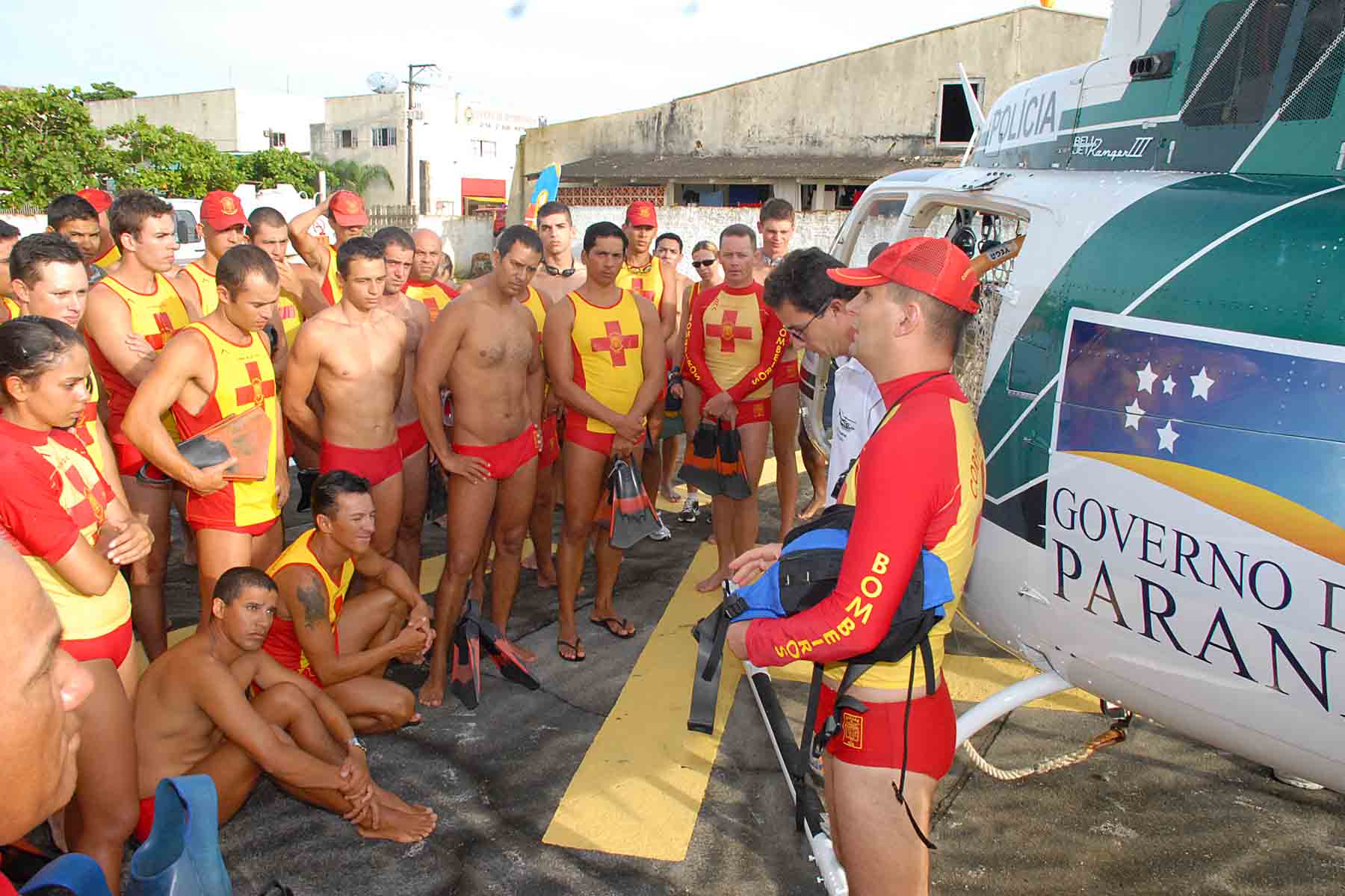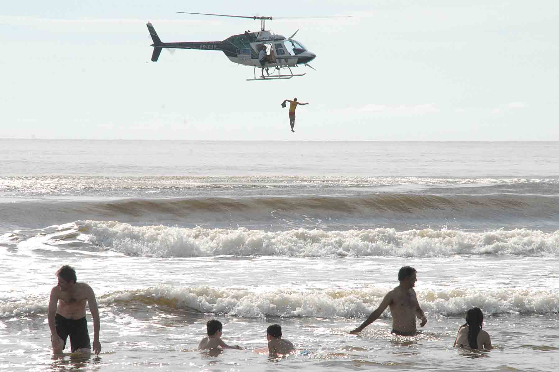 Veranistas que passeavam pela praia de Matinhos, na manhã desta terça-feira (19), acompanharam o treinamento de 50 bombeiros para salvamento no mar com o uso de helicóptero. Desde o início da temporada, já ocorreram 476 resgates e 89 afogamentos, de diferentes graus, e oito mortes no litoral.