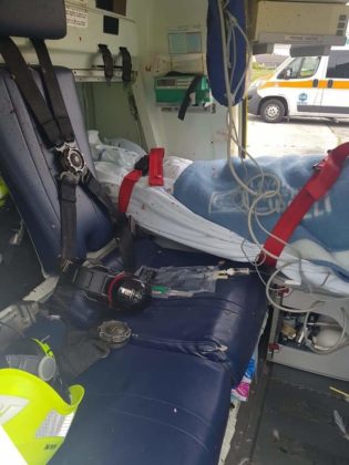 Com o impacto foi preciso retornar e pousar o helicóptero no aeroporto de Pádua, pois era arriscado voar naquelas condições. Com a colisão, o piloto reduziu velocidade e altitude e pousou. O paciente foi desembarcado do helicóptero e colocado em uma ambulância que o conduziu ao hospital.