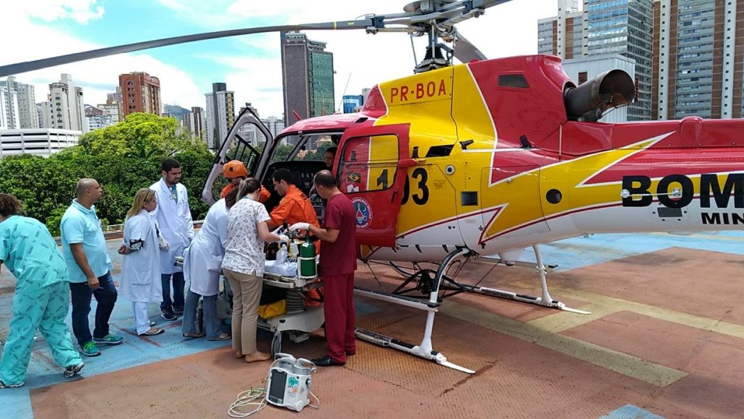 Helicóptero Arcanjo do Corpo de Bombeiros de Minas resgata criança picada por escorpião
