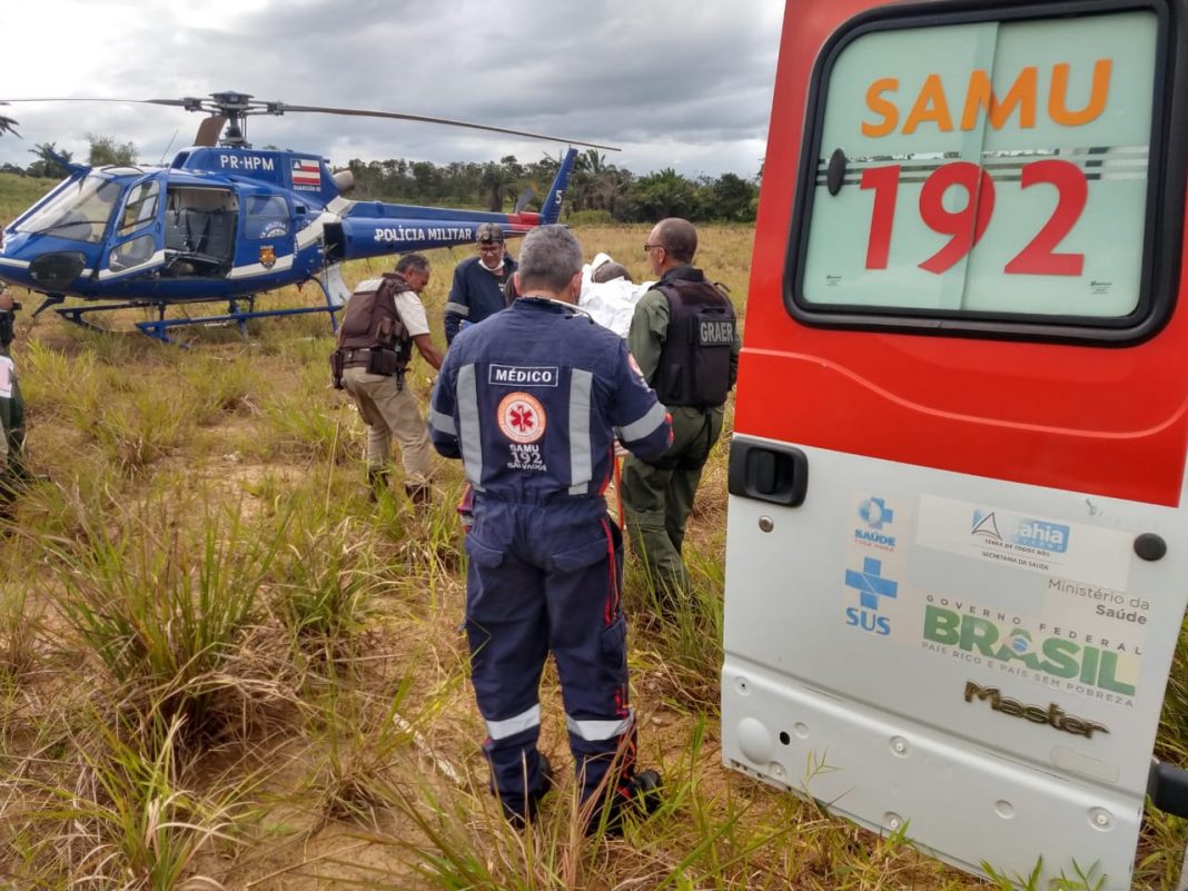 Helicóptero da PM da Bahia transporta vítima de queimaduras de Candeias para Salvador