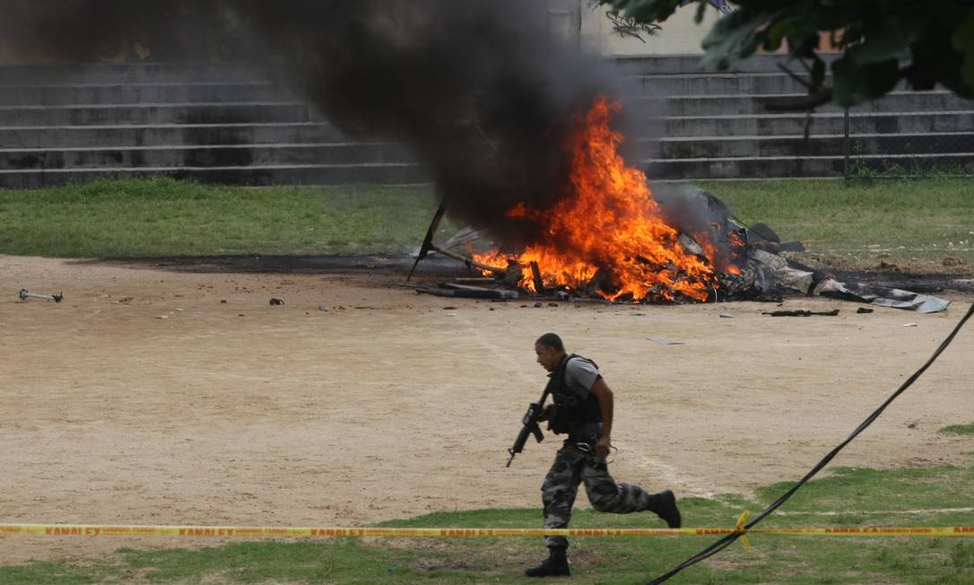 Segundo a corporação, após ser atingida, a aeronave fez um pouso forçado em um campo de futebol dentro da favela São João. Um tiroteio assusta os moradores da região desde da madrugada de hoje, quando traficantes do morro São João tentaram invadir o morro dos Macacos para disputar os pontos de venda de drogas no local, de acordo com a PM.