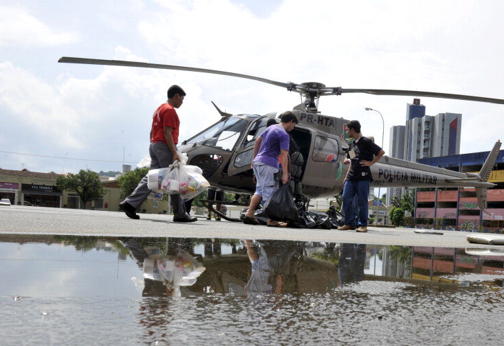 Na tarde desde domingo (23/01/11), o helicóptero Águia da Polícia Militar/SC levou mantimentos para famílias que estão isoladas em uma localidade de Araquari/SC.