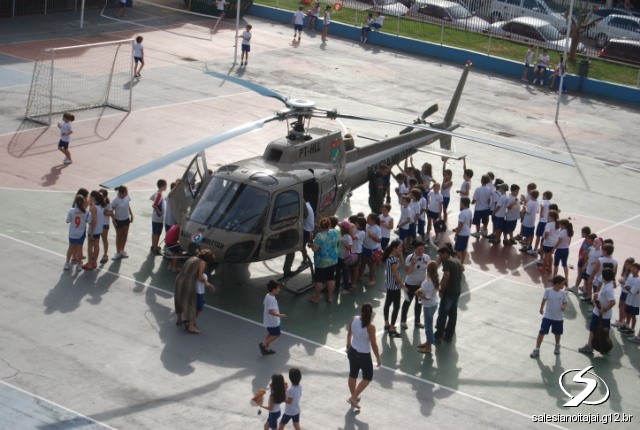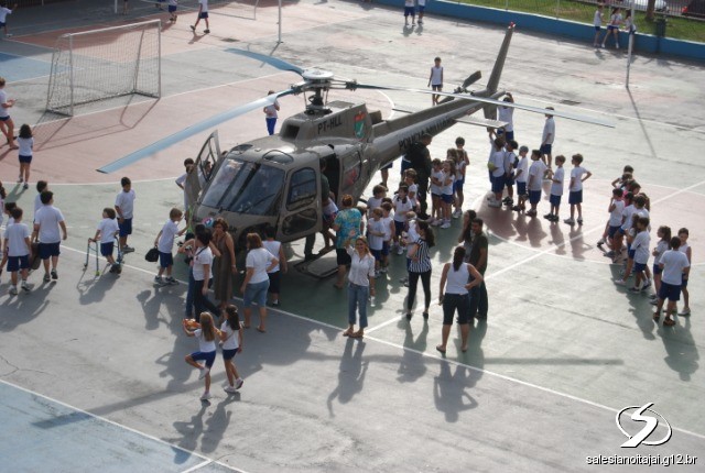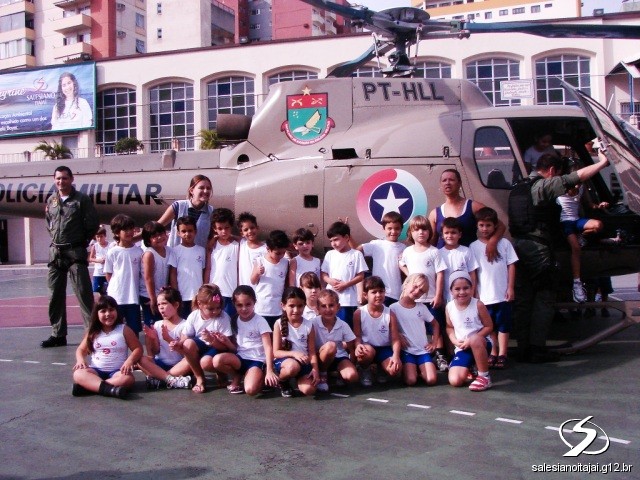 O helicóptero da Polícia Militar de Santa Catarina realizou uma operação diferente na terça-feira, dia 20 de abril de 2010. Pousou no pátio do Colégio Salesiano Itajaí às 15h, onde mais de 400 crianças o aguardavam. A bordo do helicóptero estavam o Capitão Machado, Major Teotônio, Capitão Cota e os soldados César e Carpes.