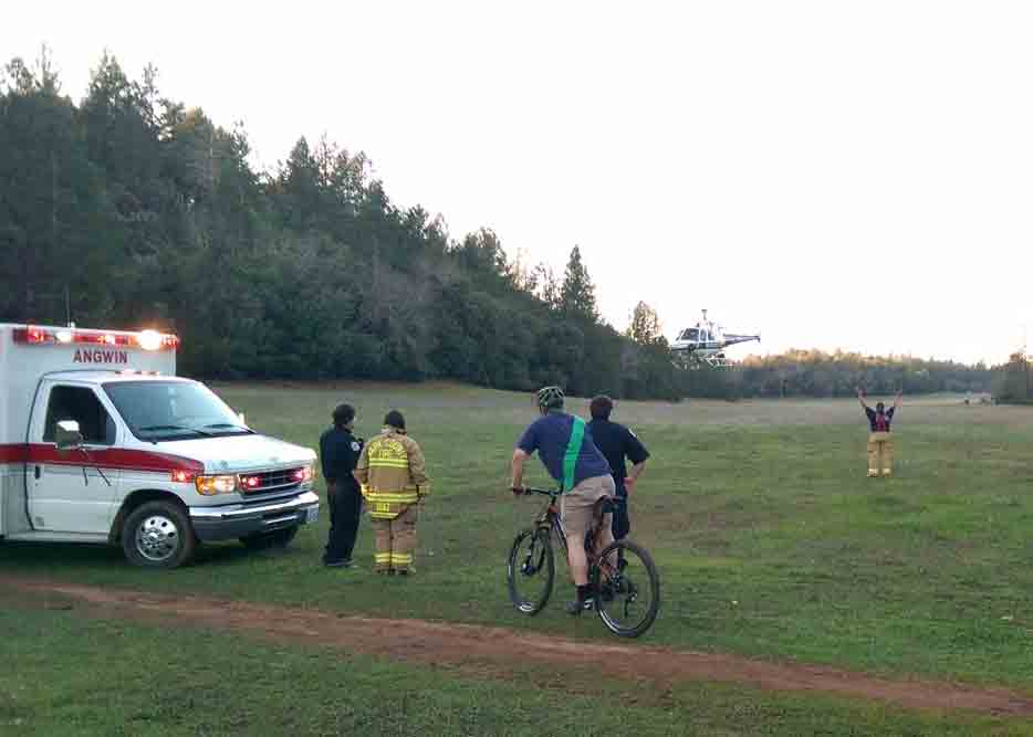 O helicóptero pousou na praia e resgatou a vítima, levando-a até o estacionamento Abbotts Lagoon, onde uma ambulância aguardava para uma avaliação médica mais detalhada.  Ela aparentava ter sofrido um ferimento moderado na perna.