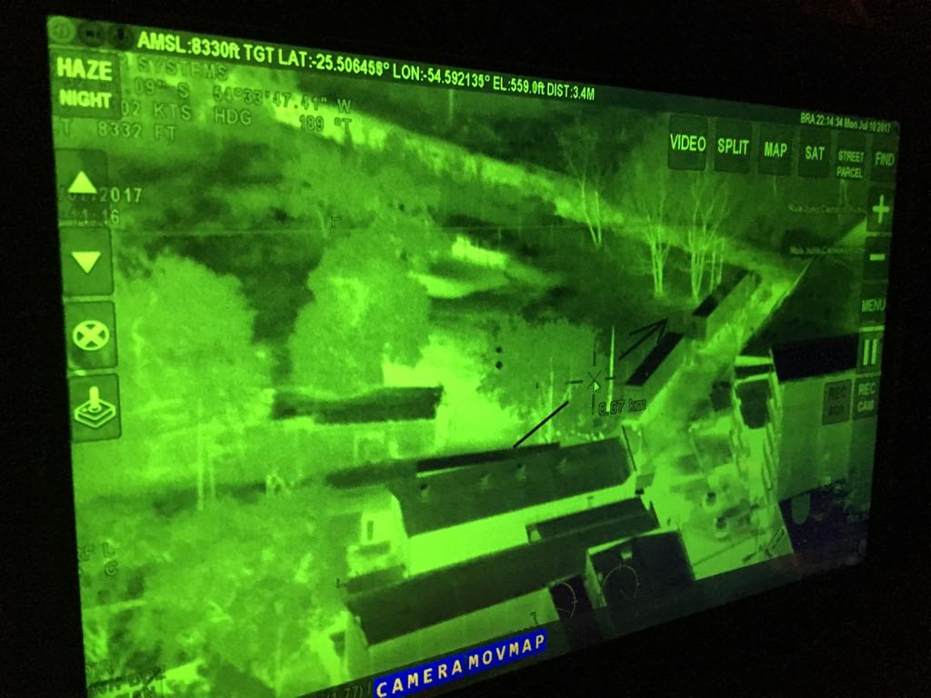 Os barcos foram acompanhados discretamente a quilômetros de distância com a câmera infravermelha da aeronave até a margem brasileira, onde os cigarros foram descarregados e transportados pela mata fechada por um bando numeroso de carregadores.