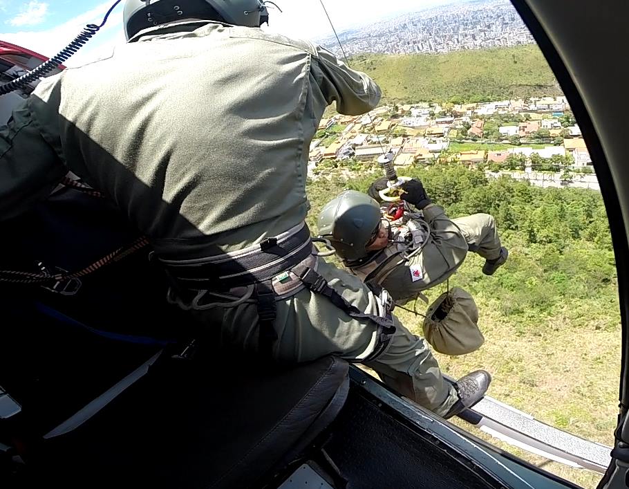 O helicóptero esquilo equipado com guincho deslocou-se para região da Serra do Curral para apoiar equipes de solo do 1° BBM, que foram acionadas para resgatar 4 pessoas que subiram o paredão da Serra do Curral com o objetivo de resgatar um cão que estaria preso na Serra.