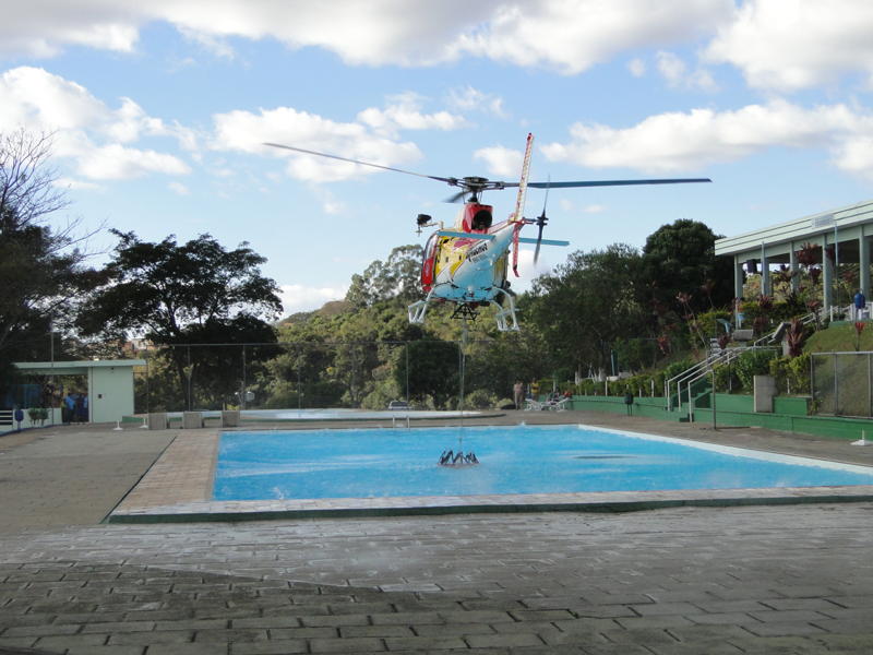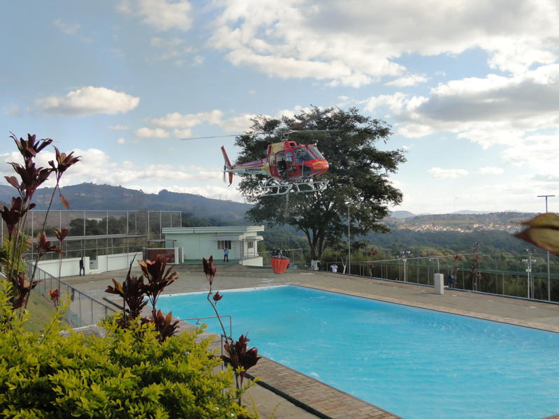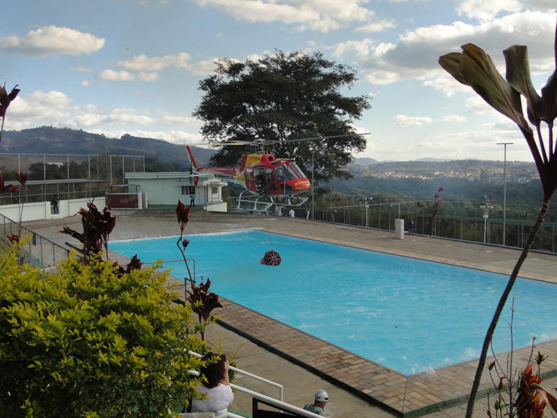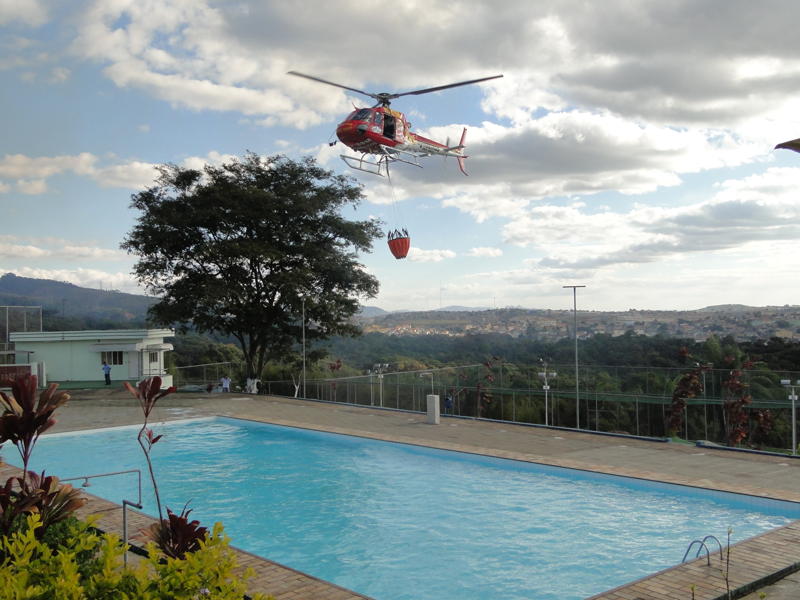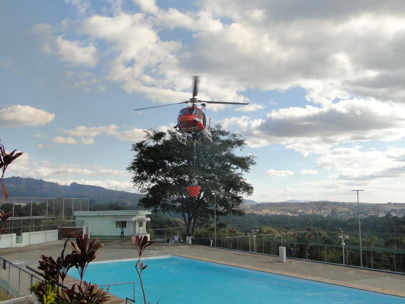 A capitação de água para lançamento no incêndio foi realizada em uma piscina de um clube próximo à região. “Se não fosse esse ponto de capitação teríamos dificuldades em debelar o incêndio, pois não existia tempo suficiente para montar nosso reservatório e não havia outro ponto para capitação de água próximo do local”, conta o Cap Farley Rocha Soares, piloto em comando do Helicóptero Arcanjo 01.