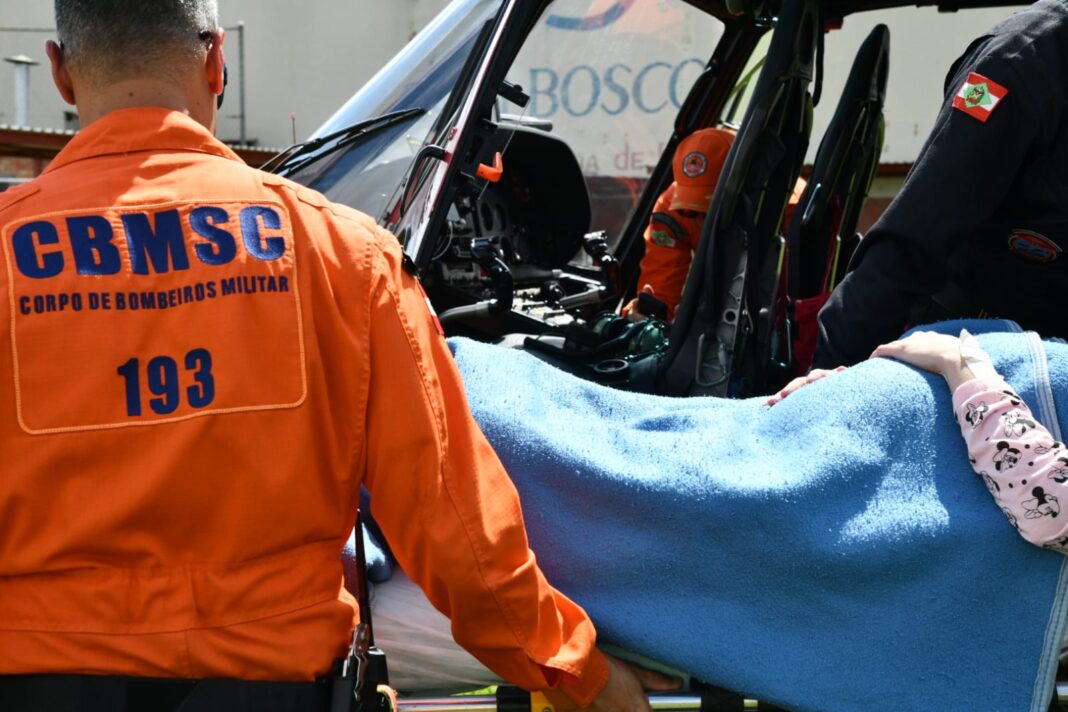 Outra gestante precisou de ajuda e uma equipe do Arcanjo 01 do Batalhão de Operações Aéreas do CBMSC realizou seu transporte. A mulher de 26 anos e 38 semanas de gestação, apresentava hipertensão, pré-eclâmpsia e estava em trabalho de parto. Ela foi transportada de helicóptero, do município de Rio do Campo para o Hospital Regional de Rio do Sul.
