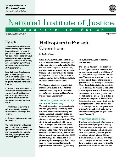 Então leia o artigo científico: Helicopters in Pursuit Operations, publicado em Ago/98, de autoria de Geoffrey P. Alpert.