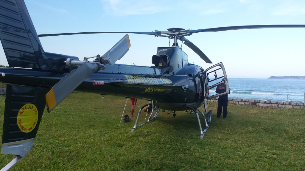 “A prioridade é sempre a vítimas, mas como constatamos que ele estava bem e tranquilo, auxiliamos também no resgate do equipamento”, disse o major Losso, comandante da aeronave. Ele explicou que a prancha tem uma quilha embaixo, que impedia o uso do cesto de resgate então um tripulante operacional desceu e ajudou o praticante a voltar a praia.