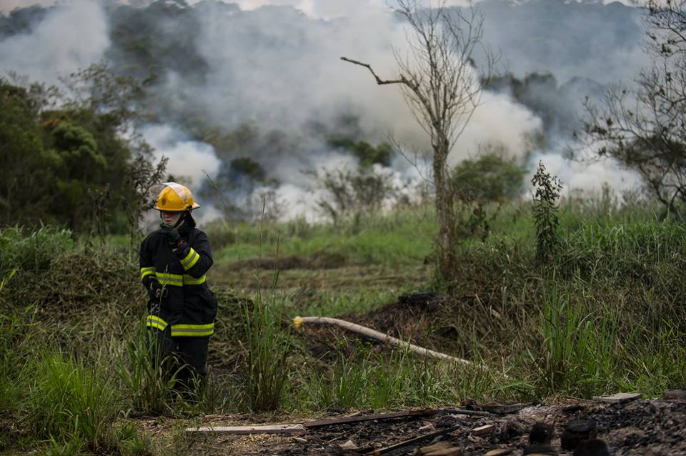 Combate a incêndio em Araquari. Foto: Maykon Lammerhirt do grupo NSC.