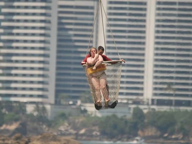 Jovem foi retirada do mar pelo helicóptero Águia, da Polícia Militar (Foto: Daniel Cruz/Arquivo Pessoal)