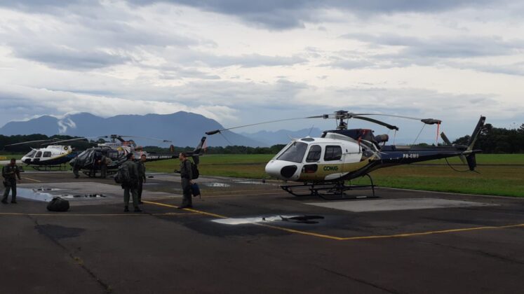 São Paulo enviou equipes do Comando de Aviação da Polícia Militar (CAVPM) com os helicópteros Águia 12, Águia 24 e Águia 33 (aeromédico). As aeronave são equipadas com guincho elétrico, maca de montanha e equipamentos de resgate. A Secretaria da Segurança Pública também mantém um avião King Air em condições de apoiar o transporte de equipes e cães farejadores, além de mais materiais para ações de salvamento e ajuda humanitária.