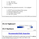 Trata-se do Preflight Check Points / Recommended Daily Inspection, Maintenance Schedule e Lamp Cooling Procedure do Spectrolab SX-16/SX-5.