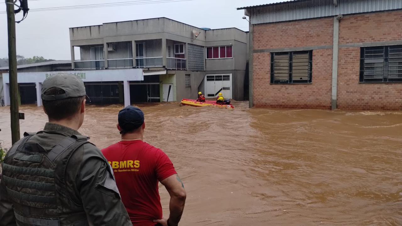 Início Mulher morre e operador aerotático fica ferido após cabo do guincho romper durante resgate Policiais Militares do Batalhão de Aviação da BM resgatam uma família, na área rural de Arroio do Meio. Foto: Brigada Militar.