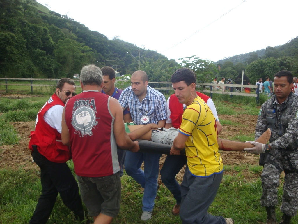 As vítimas são transportadas ao 16º GBM de Teresópolis, onde foi montada estrutura de atendimento médico e de triagem.