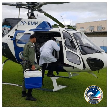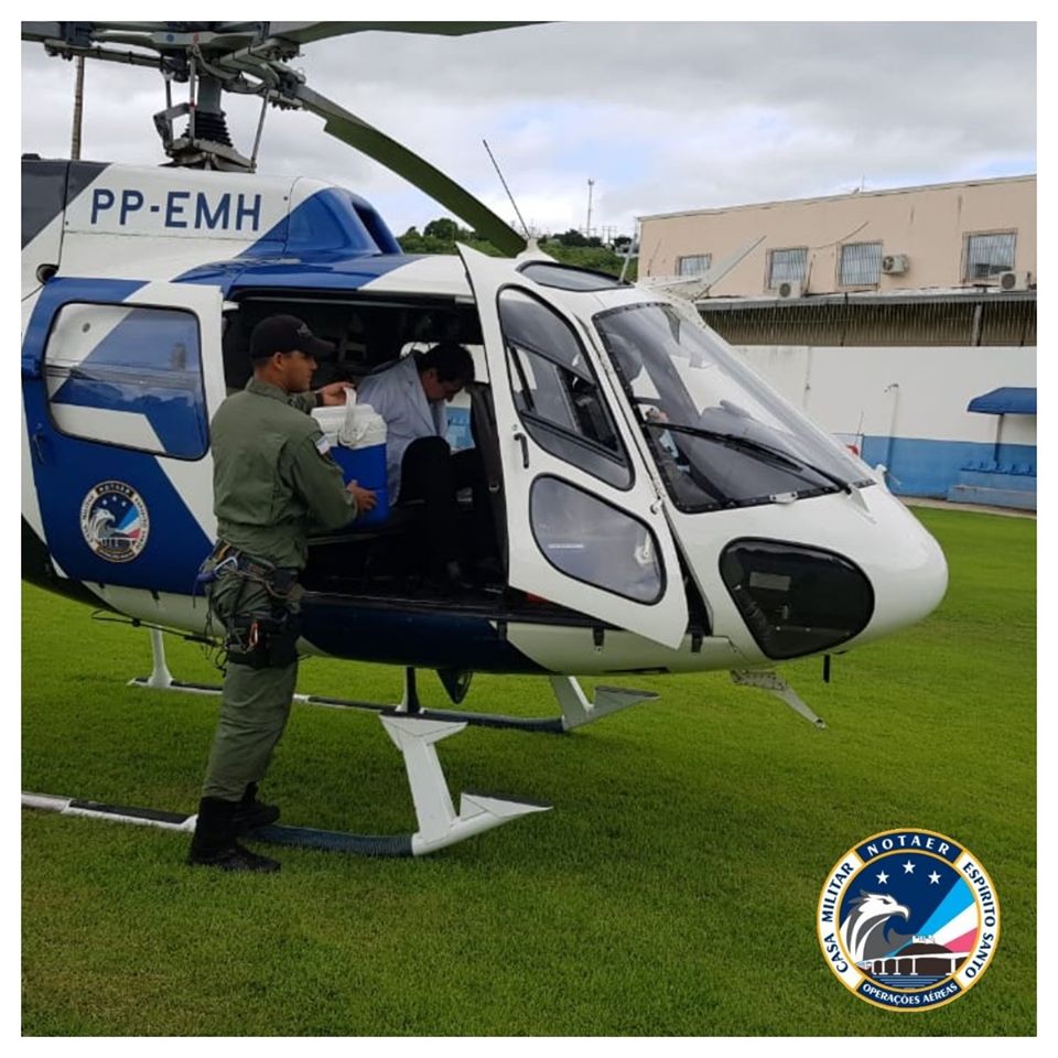 Espírito Santo – Na tarde de segunda-feira (24), equipe do Núcleo de Operações e Transporte Aéreo (NOTAER) da Casa Militar auxiliou a Central de Captação de Órgãos em mais uma missão. A aeronave foi empenhada para transportar equipe de captação, bem como os órgãos doados (um coração e um fígado) de Colatina para um hospital em Cariacica, na região metropolitana de Vitória.
